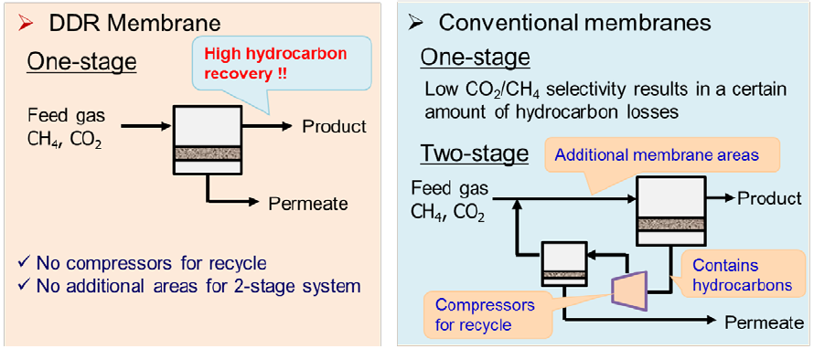 - CH4 loss in DDR membrane process is much smaller than in conventional polymeric membrane process