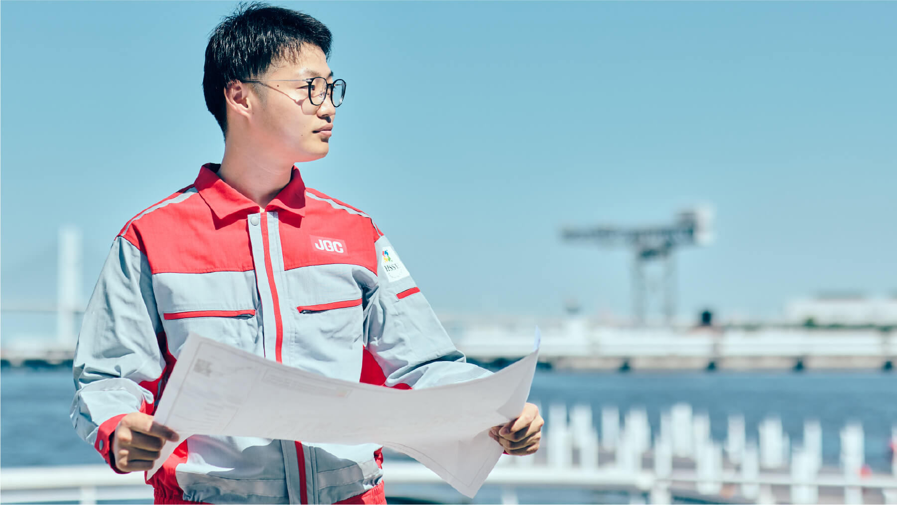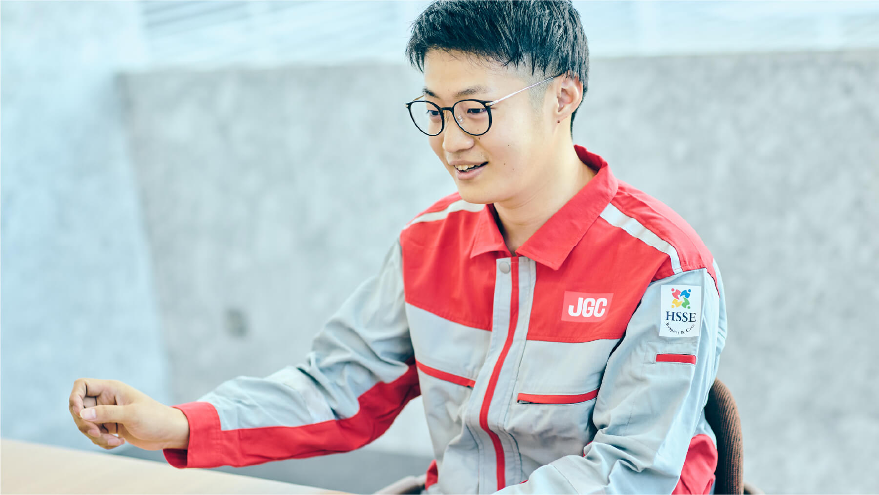 理工学部で高分子を学んでいましたが、「全然違うことをやってみたい」と考え、大学を出た後はLED照明の営業職として就職しました。しかし、コロナ禍によって訪問営業ができなくなったことを境に、手に職をつけようと検査会社に転職。プラントでの劣化調査や非破壊検査などを担当し、一通りの仕事ができるようになった頃に、「より客先に近い立場で仕事をしてみたい」と思ったことが日揮に入社するきっかけとなりました。
